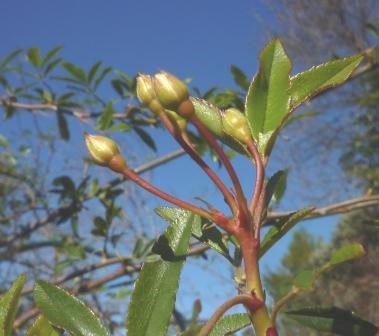 Het heeft pas één keer 's nachts gevroren. Zo komt het dat Rosa banksiae