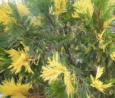 Bij een andere buurvrouw staat een mimosa bijna in bloei. Ik vind hem dan